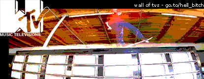 the "wall of tvs" began as the brainchild of a small group of sony-gut tinkerers with too many tvs on their hands. what began simply as an electronic motion picture display unit became a way of life. the "wall of tvs" organization is now a for-profit business unit feeding off the formidible minds of youth participating in the local rave culture. look for the "wall of tvs" at your next barmitzvah, circumsision or lynching.